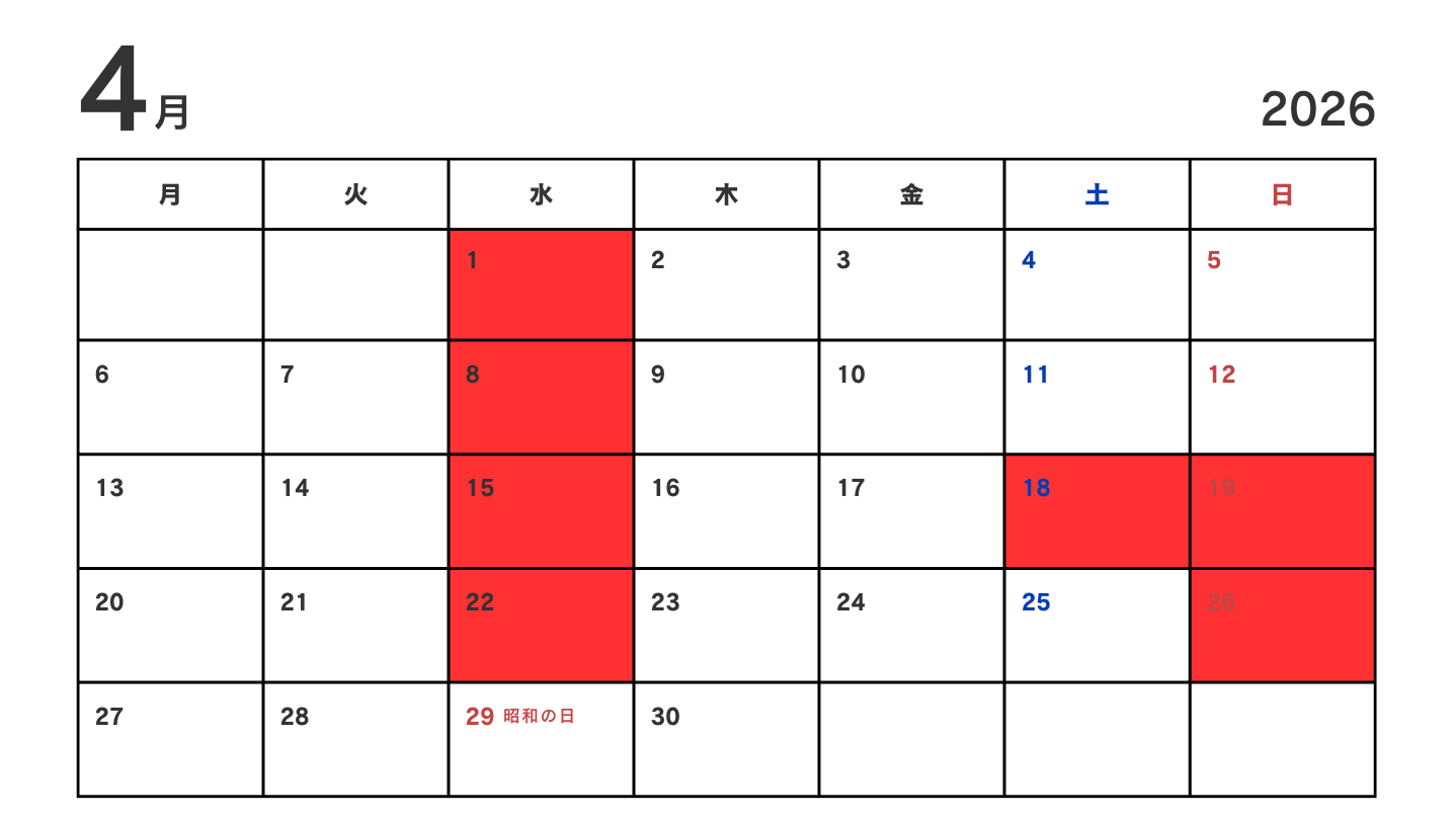 ※赤い箇所に関しては通販対応業務ができませんのでご了承ください。